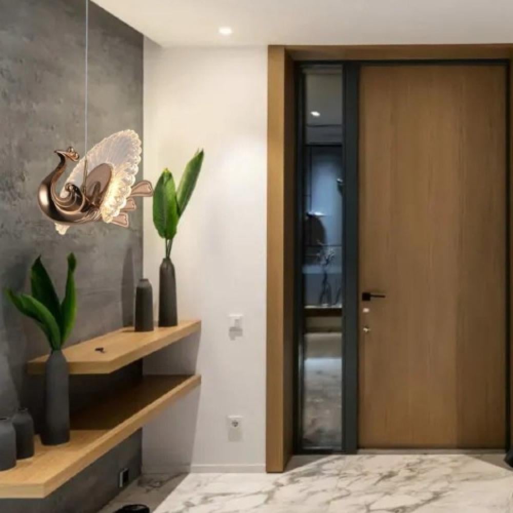 استمتع بتألق الأناقة وسحر الإضاءة مع علاقي مودرن ذهبي LED بتصميم طاووس. هذا العلاقي الرائع يجمع بين فخامة المعدن وسحر الزجاج بلون ذهبي داكن، ليخلق قطعة فنية تعزز جمال وأناقة أي مكان يتواجد فيه. بفضل تكنولوجيا LED المتقدمة